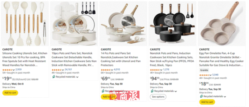 卡罗特厨具套装在亚马逊热销 图源:Amazon