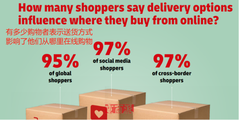 一份来自快递业巨头DHL对全球24个国家的12000名消费者的调查研究显示,高达95%的消费者都认为物流配送的方式(包括配送选择和配送速度)会决定他们在哪一个平台进行购物。而这一数值在那些社交电商消费者和跨境电商消费者中甚至更高,达到97%。