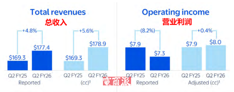 沃尔玛财报显示,截至7月31日的三个月内,沃尔玛总收入达1774亿美元,同比增长4.8%,比市场预期高出近12.4亿美元。受较强业绩推动,沃尔玛还上调了全年业绩预期,预计本财年净销售额将增长3.75%-4.75%,高于上一财季预期的3%-4%。