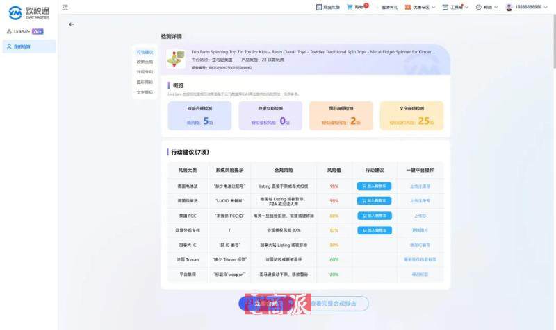 10月20日消息,欧税通近日新上线业内首个AI智能合规检测工具——LinkSafe,将全球跨境合规数据库与AI技术深度融合,卖家只需输入一个链接,即可全方位检测产品合规,让店铺合规风险可视化。