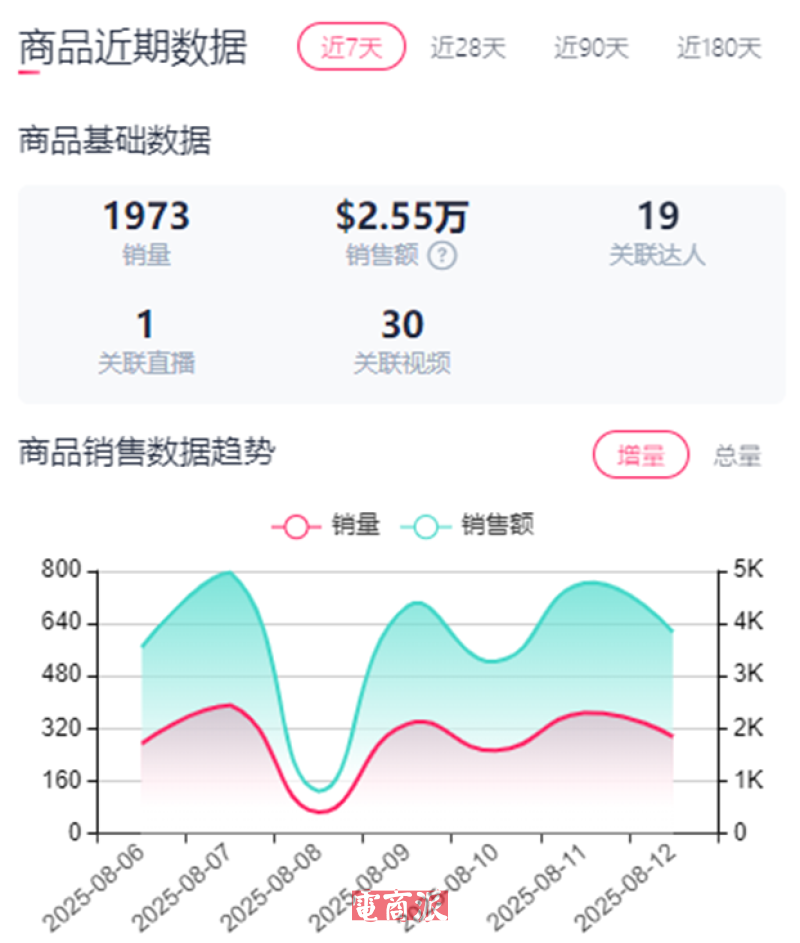 周销售额突破2万美金 图源:Fastmoss