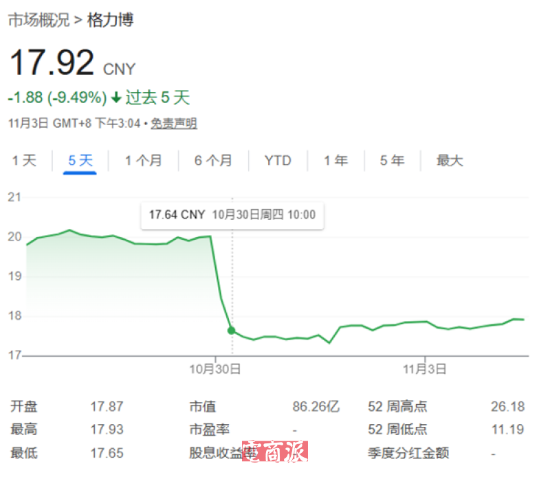 收入下滑,利润转亏上亿,现金流恶化……第三季度财报发出后,格力博当日股价应声大跌超12%,跌幅居市场首位。