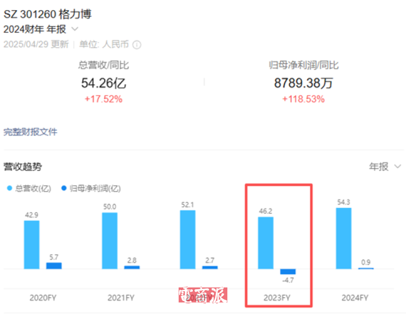 2023年在深交所上市后,该公司业绩就突然“变脸”,归母净利润同比下滑278.4%至-4.74 亿元。