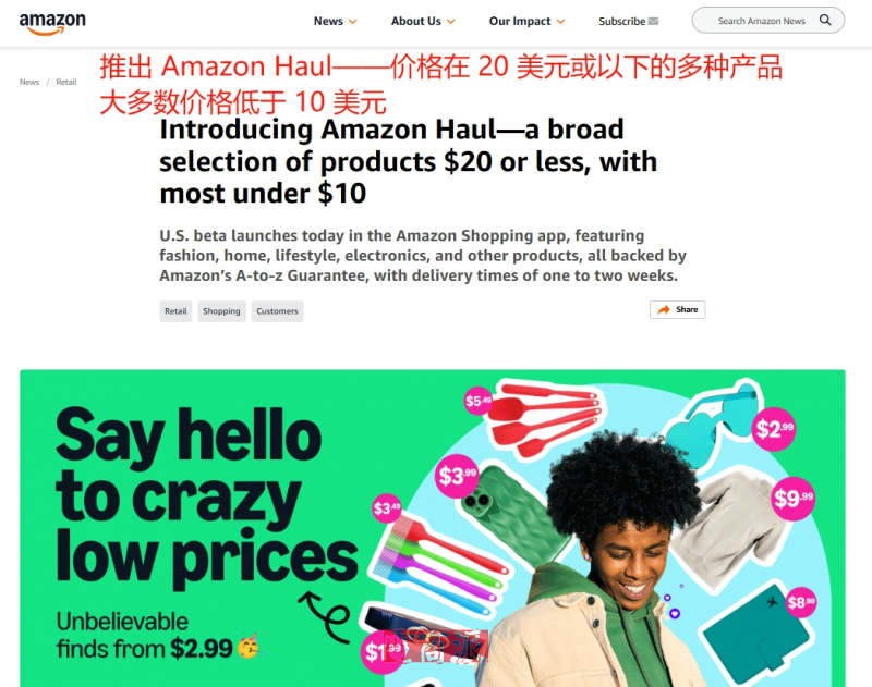 亚马逊低价商城Haul上线美国 图源:About Amazon