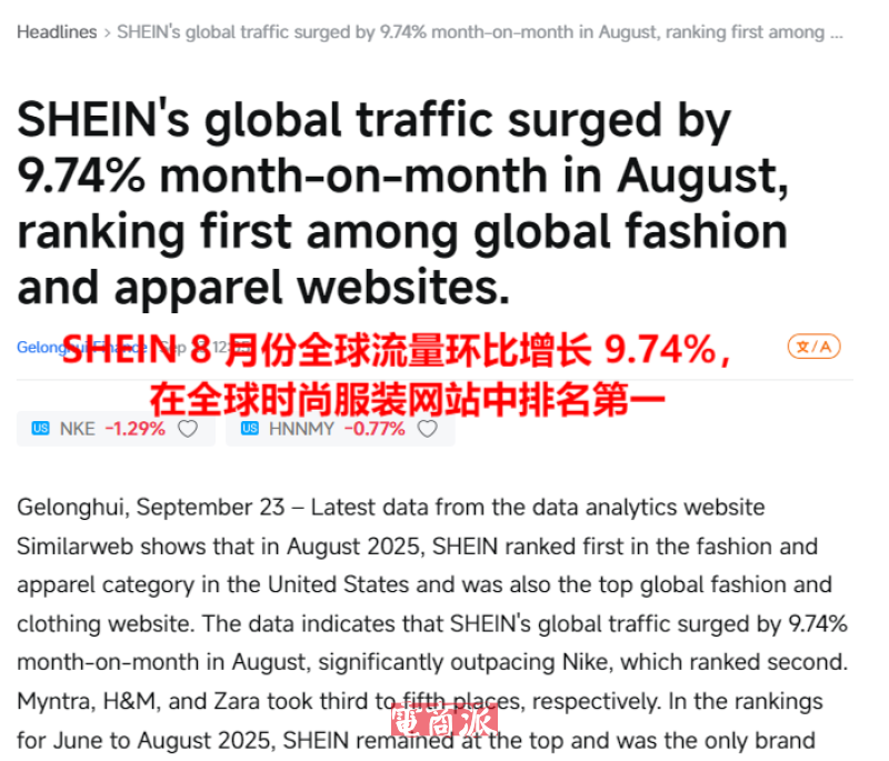 SHEIN位居全球时尚服装类网站流量第一 图源:news.futunn