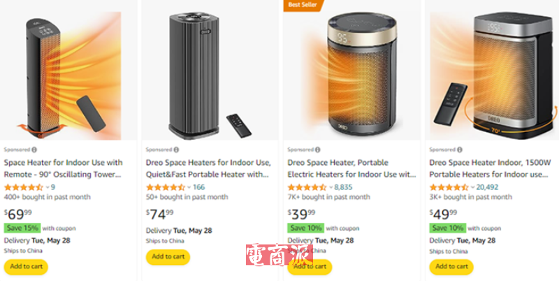 亚马逊上降价出清的部分制暖产品 图源:亚马逊