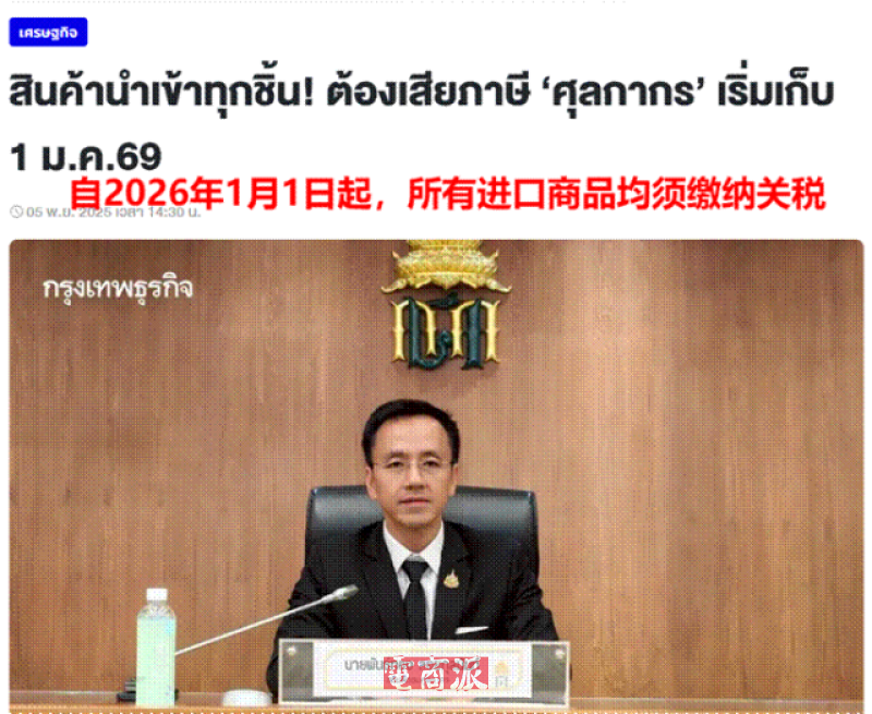 本月初,泰国海关宣布取消进口免税政策,并计划从2026年1月1日起对所有进口商品征收进口关税。换言之,从明年起所有进入泰国的国际商品将同时缴纳进口关税和增值税,这必然会导致成本上涨,售价上自然也会有所提升,可能会对卖家销售业绩产生负面影响。