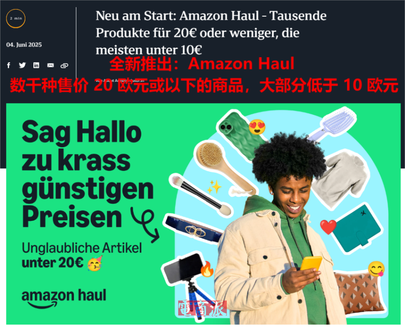 在今年6月,亚马逊就在德国站推出了低价商城Amazon Haul测试版,让德国消费者能够购买到包括日常用品、时尚配饰、家居用品等在内的数千种低价商品,这一举措也被业内视为对Temu等新兴电商平台的有力回应。