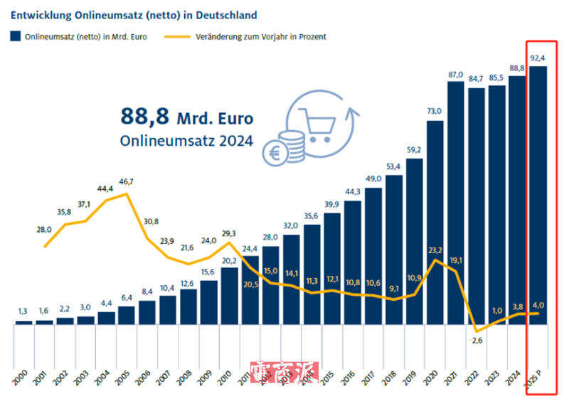 2025年德国电商销售额将达924亿欧元 图源:DHE