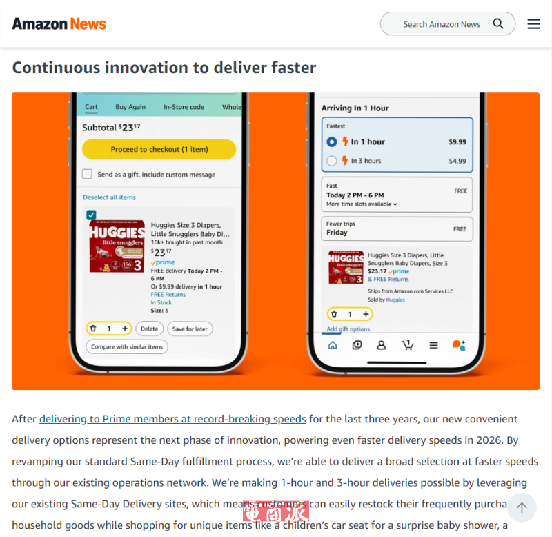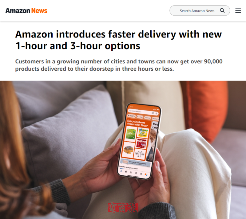 亚马逊美国推出1小时和3小时超快速配送服务