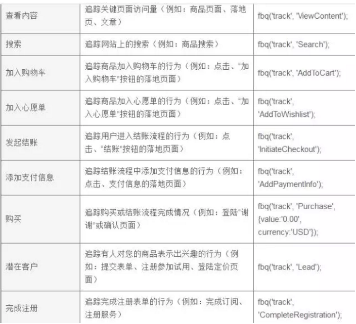 Facebook Pixel中标准事件和自定义转化的代码设置